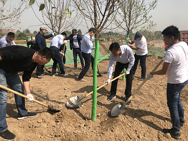 植樹過程中,全體員工們揮鋤鏟土,熱情高昂,挖坑扶苗,熱鬧非凡,充分發(fā)揚(yáng)了團(tuán)結(jié)、互助、友愛的精神。本次活動不僅使大家為增綠減霾貢獻(xiàn)自己的一份力量,還增強(qiáng)了團(tuán)隊(duì)協(xié)作能力。