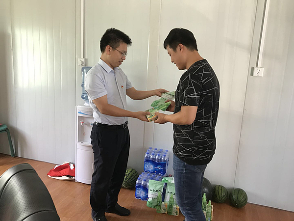 7月17日下午,能源公司黨支部組織開展一線黨員關愛“送清涼”慰問活動,深入公司各在建項目工地現(xiàn)場,為奮戰(zhàn)在高溫一線的黨員及各現(xiàn)場代表送去西瓜、礦泉水、菊花茶、花露水等防暑降溫慰問品。