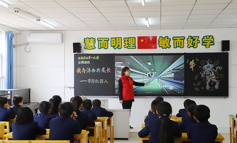 隨后,公司黨支部和學校共同為新成立的“紅領巾愛心書吧”公益讀書角揭幕,投資公司黨員干部踐行學習雷鋒、懷念雷鋒的紅色情懷,捐贈近百本圖書,讓愛心在溫暖與奉獻的公益平臺中傳遞。投資公司技術人員還走進課堂,為學生們講授了一堂精彩的“區塊鏈+管廊機器人”課程,拓寬了學生們的科學視野,播撒下創新的種子。