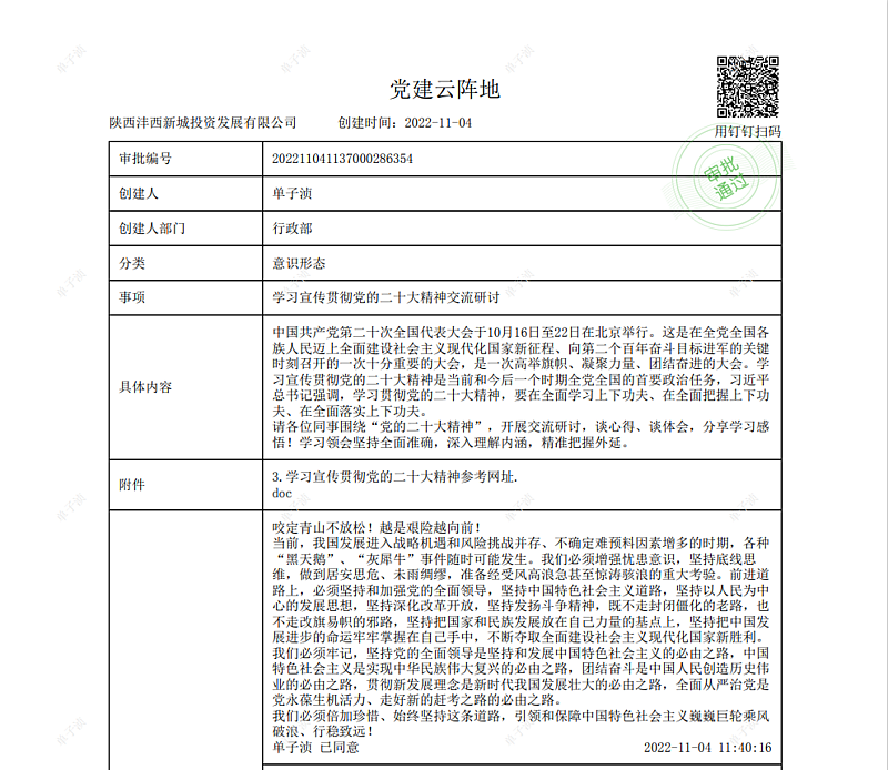 灃西投資黨支部構(gòu)建起由公司領(lǐng)導(dǎo)、業(yè)務(wù)骨干、固定宣講員、學(xué)雷鋒志愿者、項目方等成員廣泛參與的宣講隊伍,以學(xué)習(xí)宣傳貫徹黨的二十大精神為主線,聚焦黨的二十大提出的重大理論觀點、重大戰(zhàn)略思想、重大目標(biāo)任務(wù)、重大工作部署,充分發(fā)揮網(wǎng)絡(luò)媒體優(yōu)勢,開展線上線下相互配合、相互補(bǔ)充的主題宣講,針對不同群體個性化需求,開展分層次、分眾化靶向式宣講,構(gòu)建起全方位、立體化宣講覆蓋面。
