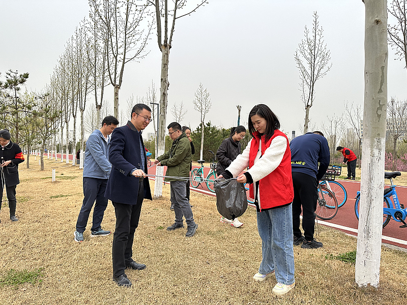 活動以“主題黨日+低碳騎行、實地調(diào)研、志愿服務、參觀學習”的形式進行。全體干部員工沿灃河綠道開展近20公里的往返騎行體驗,結(jié)合慢車大比拼、自行車障礙賽等趣味游戲,實地深入了解灃西新城河道灘面日常管護、中小修及應急搶險項目運維現(xiàn)狀,并針對現(xiàn)存問題提出解決方案,為后續(xù)進一步做好各項目運維管理、更好服務轄區(qū)群眾奠定基礎(chǔ)。隨后,全體干部員工在沿途開展了垃圾清理學雷鋒志愿服務,手拿夾子等清潔工具,將沿途道路兩旁的煙頭、白色垃圾、雜物等一一清除。最后集體參觀了灃河(文教園段)濕地生態(tài)公園,學習公園設計做法及運維現(xiàn)狀,圍繞生態(tài)修復和城市修補問題以及“大公園,微旅游”的運營模式展開討論,有效發(fā)散思維,激發(fā)靈感,讓主題黨日變成了一堂生動的培訓課堂。
