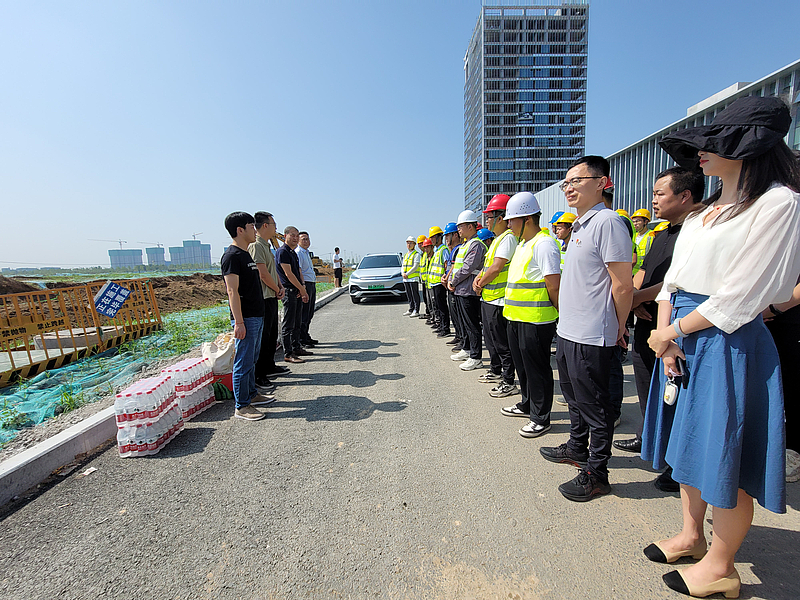 項(xiàng)目負(fù)責(zé)人對(duì)科創(chuàng)谷五路、西北四路照明工程施工進(jìn)度和整體建設(shè)情況進(jìn)行逐一講解。企業(yè)管理部黨支部書(shū)記、陜西MIC黨支部書(shū)記為現(xiàn)場(chǎng)作業(yè)人員發(fā)放防暑物資,對(duì)高溫作業(yè)人員進(jìn)行慰問(wèn),并要求施工單位科學(xué)安排施工時(shí)間,加強(qiáng)防暑降溫保障,扛起安全生產(chǎn)主體責(zé)任,在確保安全和質(zhì)量的前提下,有力有序推進(jìn)項(xiàng)目建設(shè)。