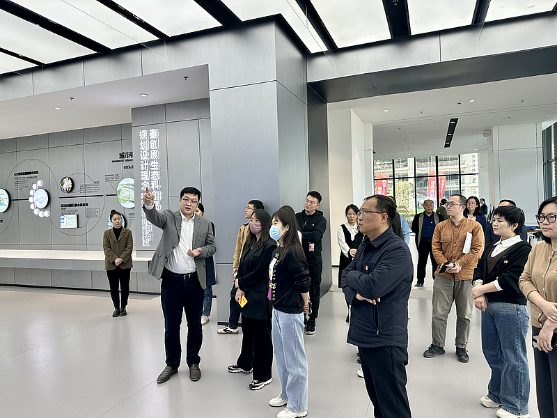 活動中,全體人員前往秦創(chuàng)原生態(tài)科創(chuàng)島城市規(guī)劃展廳,聽取講解員介紹秦創(chuàng)原生態(tài)科創(chuàng)島的整體規(guī)劃、產(chǎn)業(yè)配套、建設(shè)進展等情況,集中觀看項目建設(shè)最新進度視頻短片;接著參觀秦創(chuàng)原生態(tài)科創(chuàng)島沙盤模型,深入了解項目業(yè)態(tài)分布、建設(shè)進展及載體招商等情況。隨后,雙方實地調(diào)研5單元6、8號樓項目現(xiàn)場,了解目前項目建設(shè)進展情況,雙方圍繞新時代人才隊伍建設(shè)、科創(chuàng)載體招商工作等重點內(nèi)容開展交流研討。