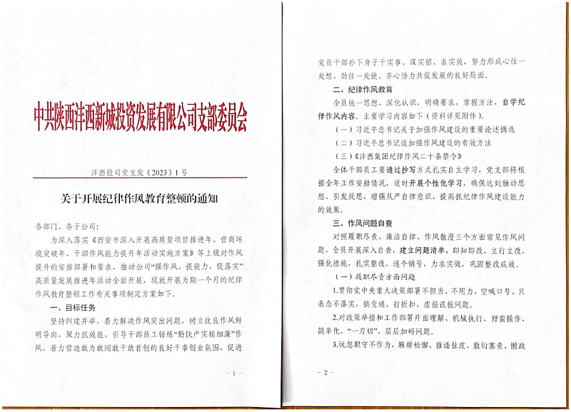 為深入貫徹黨的二十大精神,認真落實集團干部作風能力提升年的工作要求,灃西集團投資公司黨支部組織開展了系列干部作風提升活動,積極打造作風能力提升“陣地”,推動全體干部員工作風能力提升。
