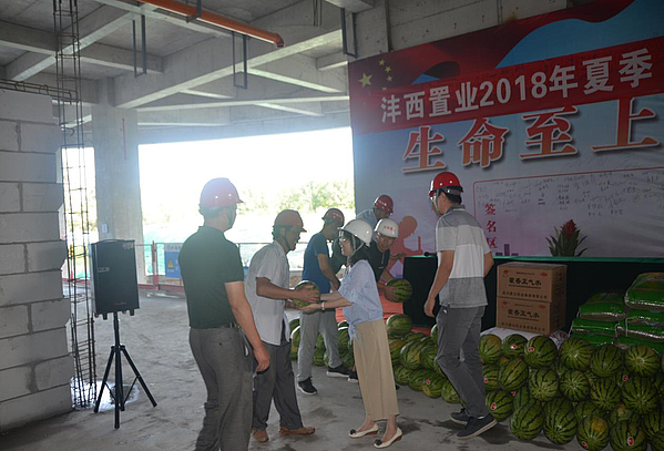 近期持續(xù)高溫,又正逢施工高峰期,為落實公司以人為本的管理理念,確保一線施工人員暑期施工安全,7月25日上午,陜西省灃西置業(yè)有限公司開展2018年夏季“送清涼、促生產(chǎn)”活動,為公司在建項目送去防暑降溫品,把對施工人員的關(guān)心關(guān)懷送到項目一線。