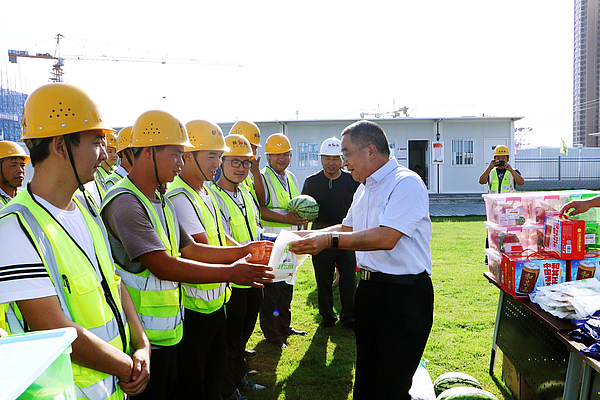 7月23日,正值“大暑”,集團(tuán)黨委書記、董事長楊建柱,總經(jīng)理姜勤發(fā)前往灃西第二學(xué)校、第三小學(xué)、第四學(xué)校項目工地及同德佳苑小區(qū),看望慰問奮戰(zhàn)在一線的員工,為他們送去西瓜、涼茶、藥品等防暑降溫物品。