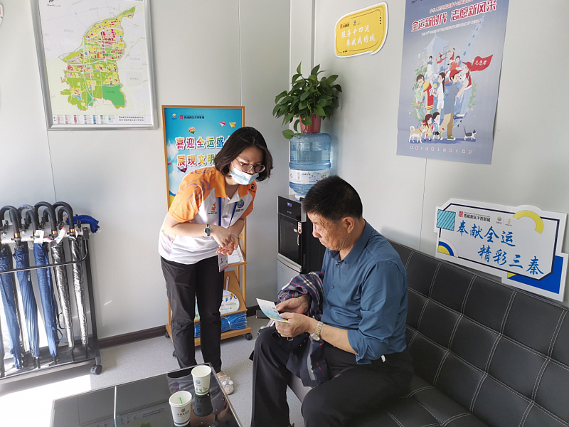 志愿者賀欣執(zhí)勤時恰逢中秋佳節(jié),雨后天晴、陽光明媚的上午,一位花甲老人走進了西部云谷二期站志愿者崗亭,老人問到:“在哪里可以取十四運會比賽的票???”賀欣看到老人趕緊讓他先坐下休息,詢問了具體情況,拍下了取票碼,與一同執(zhí)勤的志愿者胡穎前往附近取票點幫老人領(lǐng)取了次日觀賽門票,交到了老人手中。交談過程中,得知老人不了解觀賽注意事項時,賀欣主動為老人下載了全運通APP,并逐一介紹了如何使用。這時,老人的老伴來電話詢問是否取到票時,老人流露出慈祥的表情贊許到:“多虧了灃西新城這里的十四運會城市志愿者,票已經(jīng)取到啦,比你娃管用!”賀欣談到,“這是全運會第一次走進西北地區(qū),作為土生土長的西安人我感到無比驕傲,能成為‘小秦寶’的一員更是尤為自豪,我愿意將我的汗水揮灑在我愛的這片土地上。”