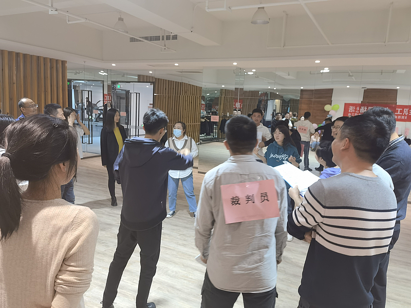 本次活動(dòng)由女員工參賽,男員工擔(dān)任裁判員及后備隊(duì)員,活動(dòng)分為個(gè)人賽和團(tuán)體賽,各包含兩個(gè)項(xiàng)目。通過計(jì)時(shí)跳繩、踢毽子等個(gè)人項(xiàng)目,模仿競(jìng)猜、穿針引線等團(tuán)體項(xiàng)目,既鍛煉員工體力,又趣味十足,參賽者們個(gè)個(gè)不甘示弱,斗志昂揚(yáng),熱情高漲,現(xiàn)場(chǎng)氣氛熱烈,歡聲笑語此起彼伏,全體干部員工充分體驗(yàn)到競(jìng)賽的緊張、活動(dòng)的趣味、團(tuán)隊(duì)的溫暖。