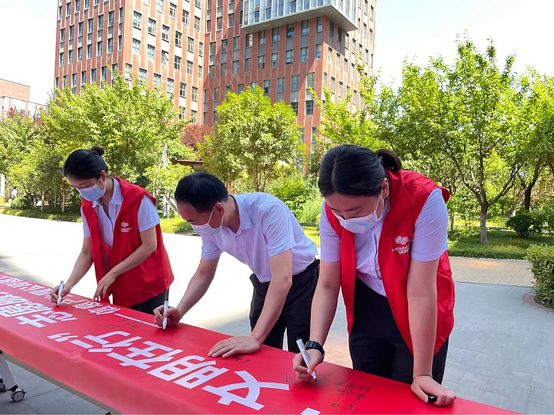 活動(dòng)中,志愿者們還制做了“安全在心 文明在行”主題橫幅,到場(chǎng)志愿者和園區(qū)企業(yè)員工紛紛在主題橫幅上簽名,大家踴躍參與,現(xiàn)場(chǎng)氣氛熱烈。