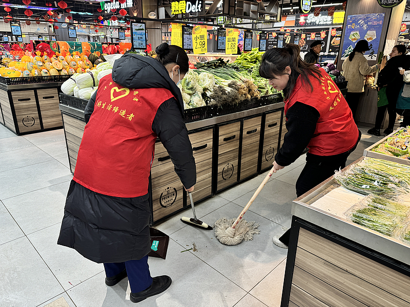 學(xué)雷鋒做公益,助推招商引資。青年志愿者們走進商鋪,助力全員招商,來到合作密切的宏聚客超市、大秦果果商鋪,做一些清潔衛(wèi)生、陳列產(chǎn)品等力所能及的事,為商鋪運營增添一份力量,積極營造良好的營商環(huán)境。