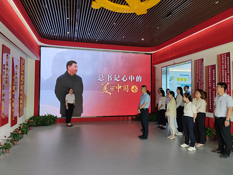 隨后,黨員們來到了鄠邑水生態(tài)保護(hù)警示教育中心,大家依次參觀“水出秦嶺”“水潤(rùn)?quán)傄亍薄八呈窞憽薄八b清風(fēng)”“水淀清濁”“水碧城興”六大板塊,深入了解鄠邑山與水的關(guān)系以及鄠邑水文明史話。同時(shí),通過鄠邑區(qū)內(nèi)近年來查處的破壞水生態(tài)環(huán)境典型案例和負(fù)面清單,以案示警,教育引導(dǎo)廣大黨員干部以案例為鏡鑒,提高紀(jì)律規(guī)矩意識(shí)。