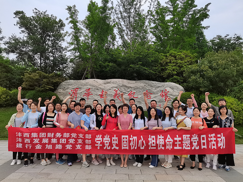 為深入開展黨史學(xué)習(xí)教育,深刻領(lǐng)會(huì)中國(guó)共產(chǎn)黨成功推動(dòng)革命的寶貴經(jīng)驗(yàn),傳承中國(guó)共產(chǎn)黨在長(zhǎng)期奮斗中鑄就的偉大精神,6月26日,灃西集團(tuán)財(cái)務(wù)部黨支部、灃西發(fā)展集團(tuán)黨支部聯(lián)合建設(shè)銀行咸陽(yáng)金旭路支行黨支部,赴渭華起義紀(jì)念館開展“學(xué)黨史、固初心、擔(dān)使命”主題黨日活動(dòng)。黨員、積極分子、團(tuán)員及員工代表參加。