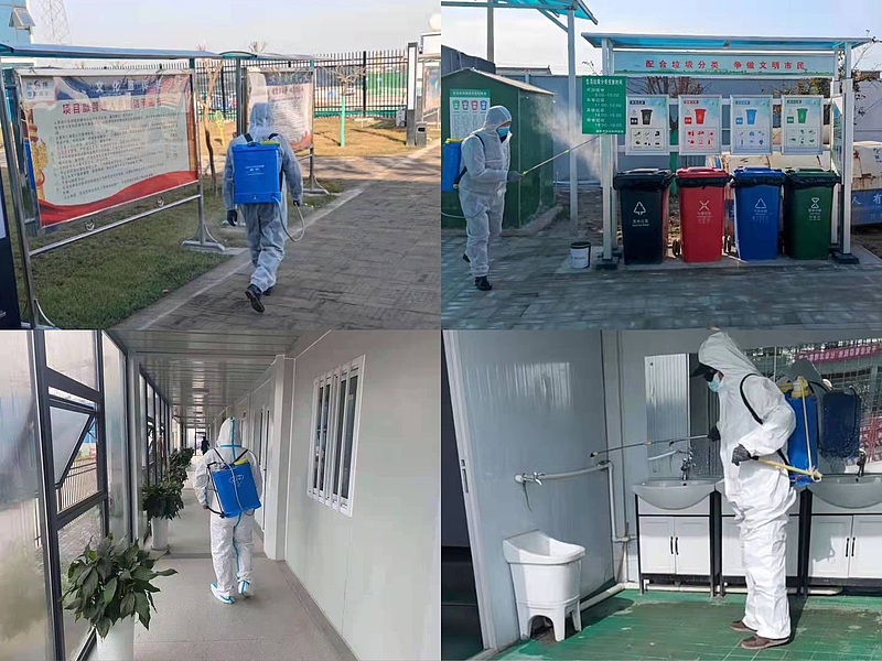 在項(xiàng)目各單元配齊防疫帳篷、溫度計(jì)以及消毒劑等防疫物資,每日安排專人對(duì)指揮部、各項(xiàng)目部樓梯、辦公及門禁區(qū)等公共區(qū)域進(jìn)行消殺工作;在公共區(qū)域張貼消毒記錄表,做到病毒消殺無(wú)死角。