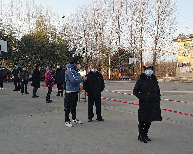 柴良革在新旺村幫助村民登記核酸檢測信息