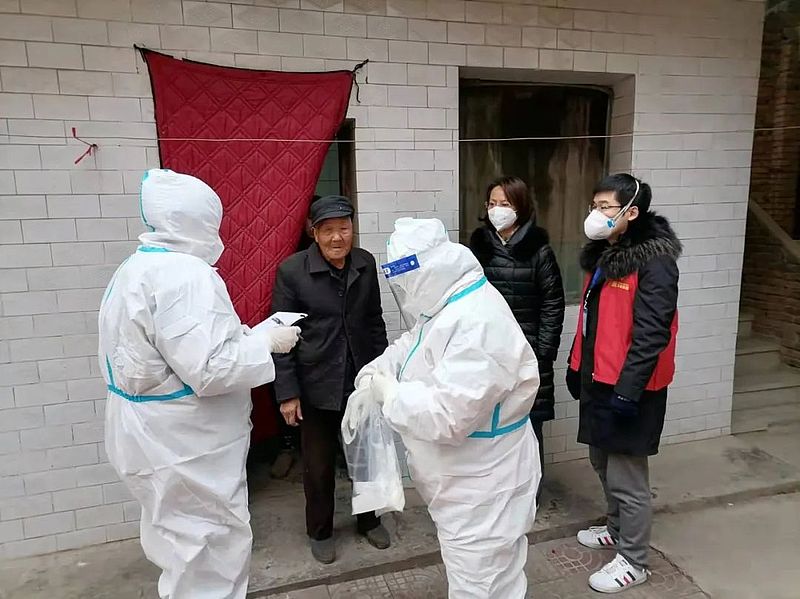 “鄉(xiāng)黨,家里還有沒有菜,買菜方便不?”“最近身體怎么樣,吃的常用藥還有沒有?”“家里幾口人,有沒有需要上門做核酸的?”灃西集團下沉干部的敲門聲在灃西新城大王、馬王街道各村“此起彼伏”,臘月寒冬,往日熱鬧的村子如今十分安靜,各家各戶大門緊閉,一場“敲門行動”正在進行中。