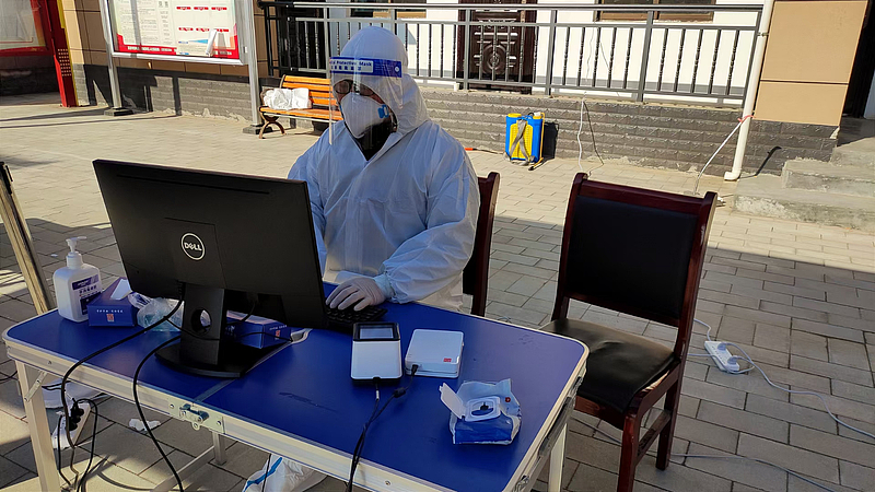 凌晨5點,他又一次被電話叫醒,新一輪核酸檢測工作即將開始,天剛亮他就前往下沉的新城新泥河村開始核酸檢測準備工作。穿上防護服、準備好檢測二維碼、進入核酸檢測系統(tǒng),一系列動作一氣呵成,這已經(jīng)是他配合開展的第6輪核酸檢測工作了。