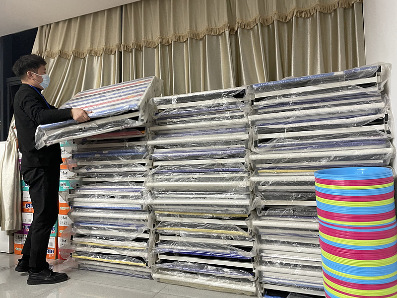 “一線的口罩、手套、防護服、酒精不能缺,大家住在辦公室需要床、被子、洗漱用品、飯盒筷子。有的同志從一線回來很晚,我們采購了各種口味的方便面,還有火腿腸、牛奶和一些水果,大家把辦公室當家,我們就要盡可能給大家提供更全面的物資保障。”張謹表示。