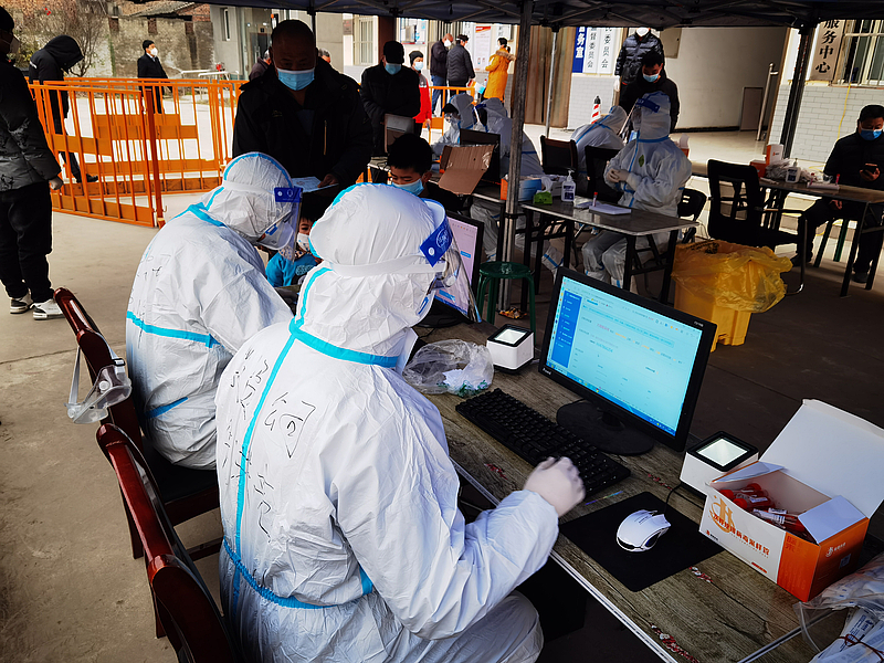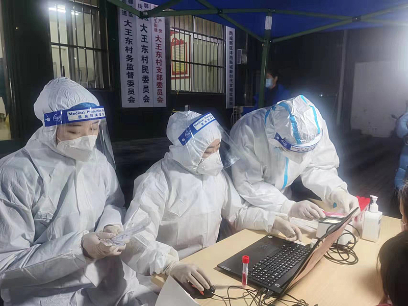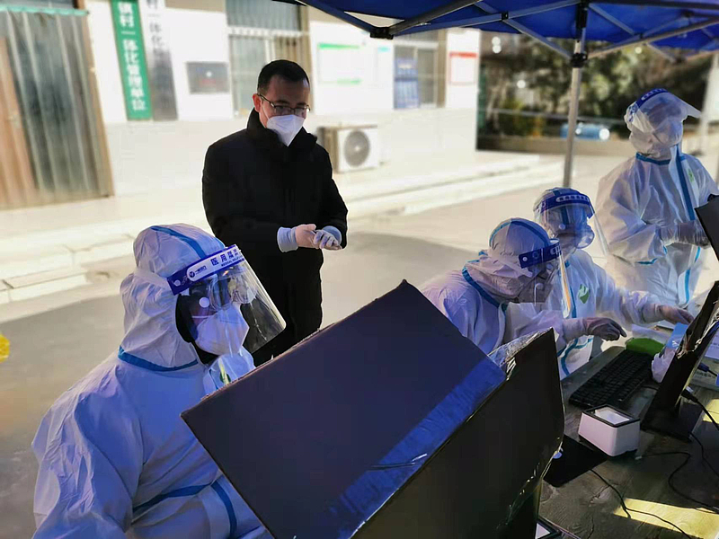 投資公司員工正在核酸檢測(cè)點(diǎn)協(xié)助開(kāi)展信息錄入工作