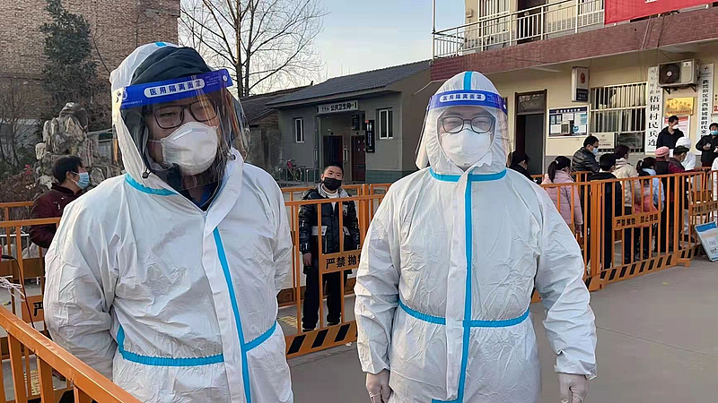 投資公司員工正在核酸檢測(cè)點(diǎn)協(xié)助開(kāi)展群眾核酸檢測(cè)工作