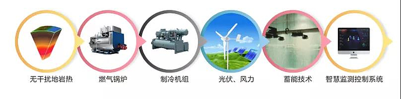 在區(qū)域供熱的基礎(chǔ)上,集成應用中深層地熱、光伏系統(tǒng)、儲能系統(tǒng)、燃氣調(diào)峰系統(tǒng)和智能控制系統(tǒng)建設區(qū)域能源站,為周圍建筑提供供冷、供熱和熱水服務,并充分利用峰谷電價、延長設備使用時間和多能互補的優(yōu)勢,提高了能源效能和經(jīng)濟效益。