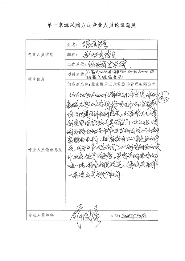 采用單一來(lái)源采購(gòu)方式的原因及說(shuō)明:該項(xiàng)目擬采購(gòu)的機(jī)械及系統(tǒng)是為青少年宮及青少年活動(dòng)中心采購(gòu)的國(guó)際新技術(shù)產(chǎn)品,且橙天嘉禾投資有限公司具備國(guó)家知識(shí)產(chǎn)權(quán)局授予的“劇場(chǎng)結(jié)構(gòu)”實(shí)用新型專利(專利號(hào):ZL 2018 2 1034718.2)。北京橙天三六零劇場(chǎng)管理有限公司為橙天嘉禾投資有限公司在西安使用該專利的唯一被授權(quán)人,且為該系統(tǒng)知識(shí)產(chǎn)權(quán)在中華人民共和國(guó)境內(nèi)獨(dú)家被授權(quán)人,滿足單一來(lái)源采購(gòu)條件。專業(yè)人員具體意見(jiàn)詳見(jiàn)附件。