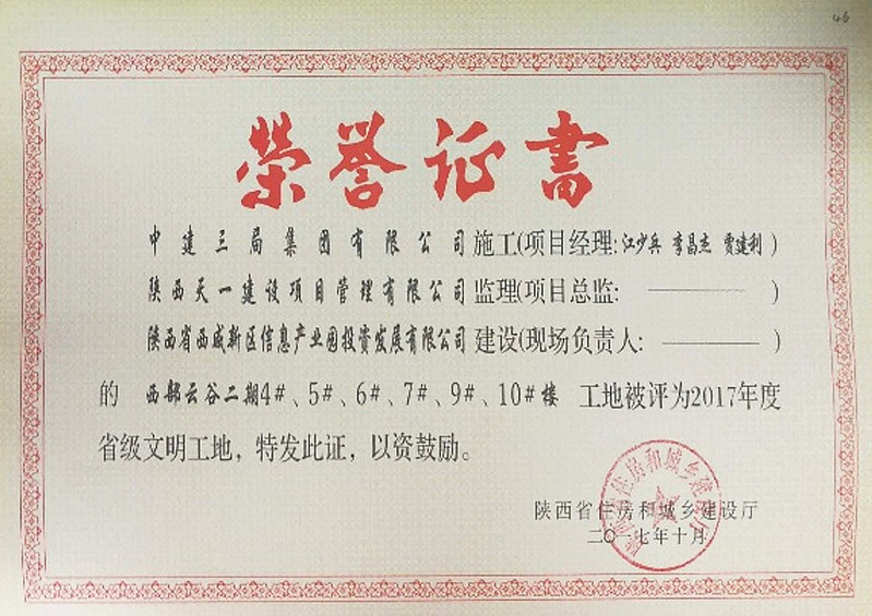 西部云谷二期項(xiàng)目榮獲陜西省級文明工地