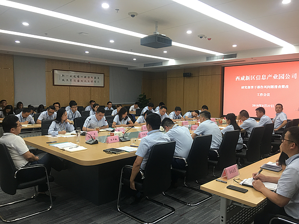 當日晚上,新城干部作風排查整改工作動員部署大會結束后,公司立即組織召開干部員工內部會議,迅速傳達了會議精神和新城相關工作方案,要求迅速成立工作領導小組,扎實開展干部作風排查整改工作,隨后各部門、各子公司立即召開內部會議,排查在作風方面存在的問題,形成問題清單逐一安排整改,實行銷號管理,并第一時間公布新城舉報電話,全面接受入園企業的監督。