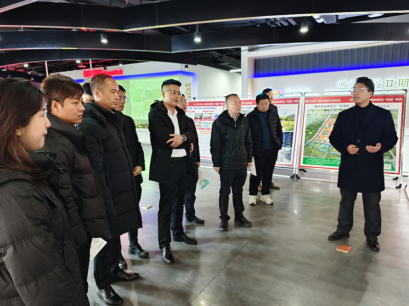 12月22日,西安市禮泉商會副會長解領權、秘書長任冬凌帶領西安市禮泉商會投資考察團一行13人參觀調研灃西新城西部云谷。