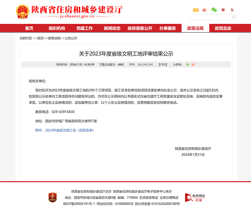 近日,陜西省住房和城鄉建設廳公布了2023年度省級文明工地評審結果,由灃西集團建設的新業雅居、江東新苑、秦灃里、春曉園、曹家灘創新中心等多個項目獲評陜西省文明工地。