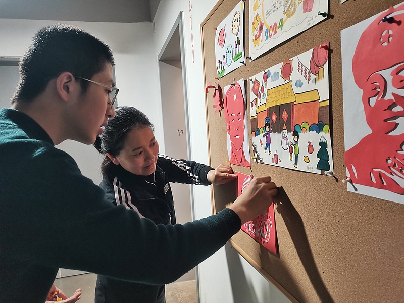 此外,宿舍美化大賽上,學生和宿管共同用書法、剪紙、繪畫等藝術表現形式,裝扮宿舍樓內文化展板,通過美化宿舍生活環境,促使學生們的人文素養和審美進一步提升。