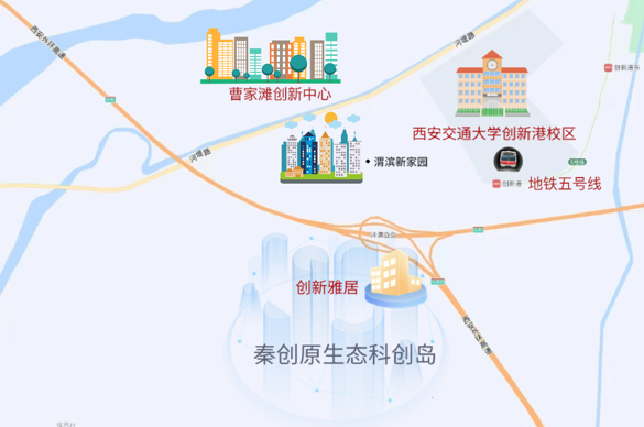 【商業覆蓋】毗鄰曹家灘創新中心、道科廣場、西安交大創新港醫院等商業及醫療資源。