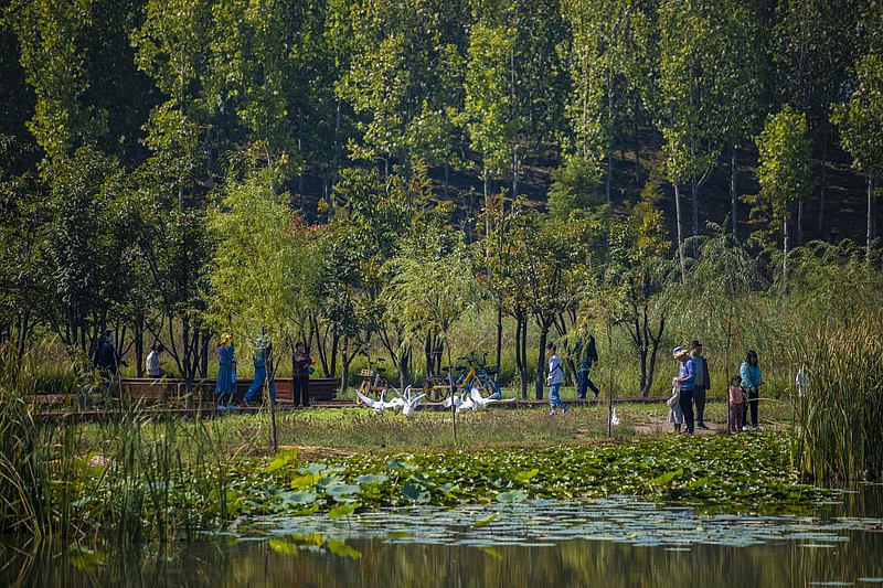 在海綿城市建設中,灃西新城創新提出了“建筑地塊確保雨水應收盡收、市政道路加強集水功能、景觀綠地優化豎向設計、中央雨洪系統形成調蓄樞紐、河道修復增加天然水域”等做法,對雨水進行“滲、滯、蓄、凈、用、排”多種方式處理。