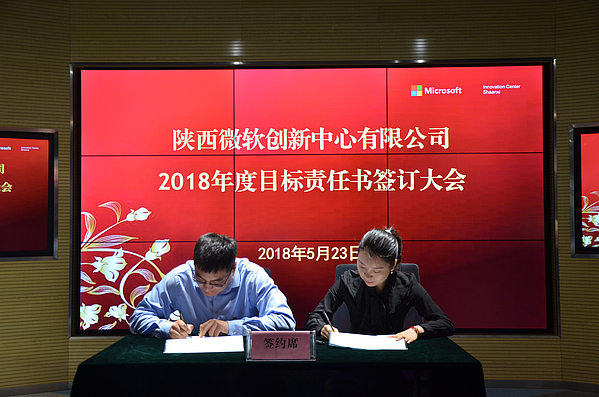 陜西微軟創(chuàng)新中心劉曉總經(jīng)理與公司班子成員簽訂了黨風廉政目標責任書,與市場部、技術部、行政部、財務部分別簽訂了部門目標責任書。由總經(jīng)理助理吳靜璇宣讀灃西集團公司關于同意我公司提拔中層干部的批復, 3名新提拔同志分別進行表態(tài)發(fā)言。
