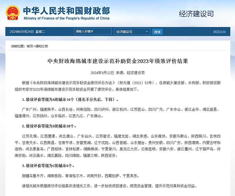 近期,《中央財政海綿城市建設(shè)示范補(bǔ)助資金2023年績效評價結(jié)果》公布,由灃西集團(tuán)子公司——西咸海綿城市參與服務(wù)的三座國家海綿城市示范城市——山西省長治市、四川省廣元市及陜西省銅川市均在績效評價中取得佳績,其中長治市與廣元市均獲評A檔,銅川市獲評B檔且穩(wěn)居西北地區(qū)首位。