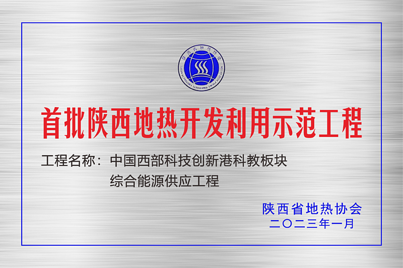 2023年1月17日,在陜西省地熱協會會員大會暨2022年年會上,灃西能源公司投資建設的中國西部科技創新港科教板塊綜合能源供應工程,榮獲“首批陜西地熱開發利用示范工程”,首創中深層地熱地埋管換熱技術區域供暖模式。為我省地熱開發利用產業發展和科技創新能力提升,實現地熱產業高質量發展目標,作出新的貢獻。