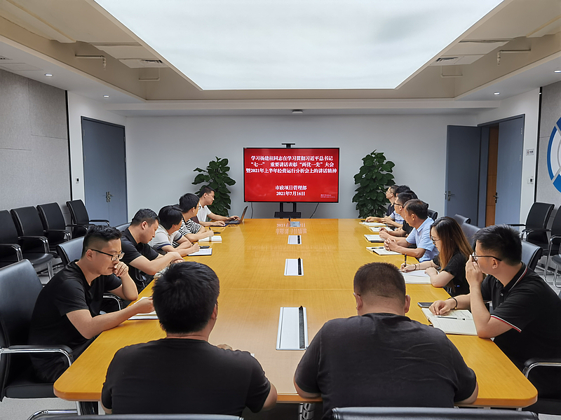 7月16日下午,灃西集團市政工程項目管理部組織召開部門會議,迅速傳達學習了楊建柱同志在學習貫徹習近平總書記“七一”重要講話表彰“兩優一先”大會暨2021年上半年經營運行分析會上的講話精神,全體干部員工參加。會議要求,一是集中精力緊盯重點項目和關鍵節點,充分用好“十四運”召開前的短暫時機,加快項目施工進度,為圓滿完成全年目標任務打下堅實基礎...