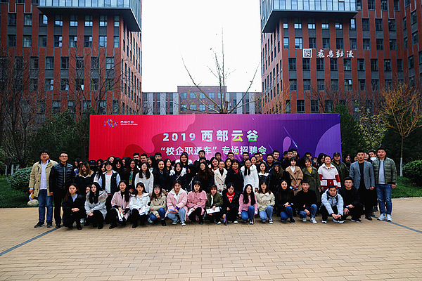 信息產業園公司聯合易美旅業和陜西服裝工程學院經濟管理學院于12月12日在西部云谷一期召開2019西部云谷“校企職通車”專場招聘會。