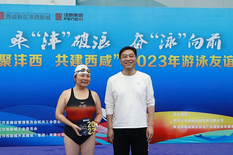 4月14日,由西咸新區機關工會、灃西新城工會及灃西集團工會共同舉辦的“融聚灃西 共建西咸”2023年游泳友誼賽在灃西新城綠色零碳游泳中心舉行。西咸新區組織人事部副部長于春輝、黨群工作部副部長王文濤,灃西新城工會副主席李濤,灃西集團紀委書記、工會主席曾志勇出席活動。