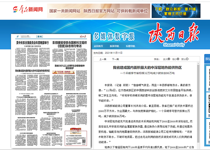 2013年,灃西新城開始中深層地?zé)崮軣o干擾清潔供熱技術(shù)試點(diǎn)。2018年1月,灃西新城舉辦無干擾地?zé)峁峒夹g(shù)論證會(huì),參會(huì)的中國工程院院士、國家能源委員會(huì)專家咨詢委員江億認(rèn)為,該技術(shù)比傳統(tǒng)淺層地?zé)崮軣岜眉夹g(shù)節(jié)能30%以上,無污染、清潔、高效、可持續(xù)利用。2019年11月,灃西新城建成全國最大規(guī)模中深層地?zé)崮軣o干擾清潔供熱技術(shù)項(xiàng)目,可為中國西部科技創(chuàng)新港159萬平方米的建筑供熱、供冷、供生活熱水。2020年5月,灃西新城能源公司在河南鄭東新區(qū)規(guī)劃實(shí)施清潔供能面積2000萬平方米;今年7月,他們又中標(biāo)北京城市副中心綜合交通樞紐中深層地?zé)犴?xiàng)目,為亞洲最大的地下綜合交通樞紐提供清潔能源服務(wù)。