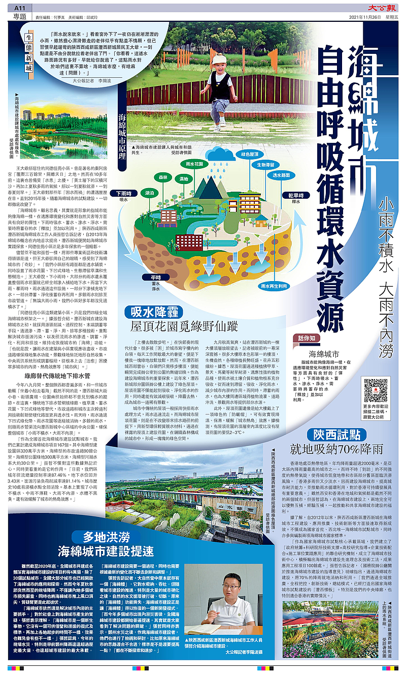 “作為國家海綿城市試點(diǎn)核心承載區(qū)域,我們建立了‘政府統(tǒng)籌+科研院所技術(shù)支撐+高校研究指導(dǎo)+企業(yè)技術(shù)配合+施工單位實(shí)踐應(yīng)用’的聯(lián)合研究機(jī)制,成立了海綿城市技術(shù)中心,積極輸出海綿城市建設(shè)先進(jìn)理念及技術(shù)工法,成果應(yīng)用工程項(xiàng)目100余處?!睆堈芨嬖V記者,《國務(wù)院辦公廳關(guān)于推進(jìn)海綿城市建設(shè)的指導(dǎo)意見》明確指出,通過海綿城市建設(shè),將70%的降雨就地消納和利用?!拔覀兺ㄟ^全域推廣,全程把控,創(chuàng)新技術(shù),總結(jié)模式,已經(jīng)打造出國家海綿城市試點(diǎn)建設(shè)的‘灃西樣板’。特別是我們的中心綠廊,也特別適合香港的實(shí)際情況?!?/p>