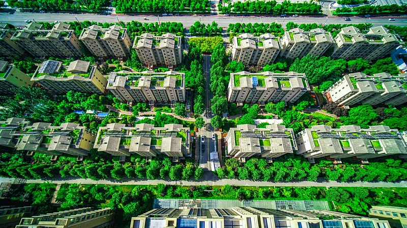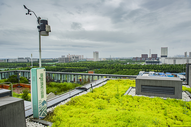 九月秋高氣爽,站在灃西新城的一棟大樓頂層放眼望去,記者被眼前的一幕深深震撼。很多大樓原本色彩單一的樓頂,生機(jī)盎然,各種綠植長勢旺盛,花卉五彩繽紛。據(jù)悉,屋頂花園通過種植佛甲草、景天、馬藺等耐旱耐澇、適應(yīng)性強(qiáng)的植物品種,使雨水被土壤介質(zhì)和植物根系充分吸收,從而起到滯留、吸收、凈化雨水,減少城市內(nèi)澇的作用。而同時,滯蓄的雨水,也為大樓周邊區(qū)域的植物澆灌、道路沖洗、景觀用水等提供部分水源。