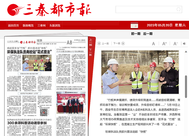 “竹板聲聲情滿懷,績效升級(jí)聽我道來……低碳目標(biāo)更清晰,常抓環(huán)保不懈力;培訓(xùn)幫扶要成效,升級(jí)目標(biāo)盯得牢……”5月18日上午,西安市生態(tài)環(huán)境局送法入企的4名執(zhí)法人員,走進(jìn)西咸新區(qū)的一家商砼站。當(dāng)看到這里一“塵”不染的全封閉生產(chǎn)場景,灃西新城大氣專項(xiàng)辦政策推進(jìn)及技術(shù)支持組組長李建軍,雙手當(dāng)“竹板”說起“環(huán)保快板”,在混凝土生產(chǎn)現(xiàn)場即興來了一場“花式普法”。