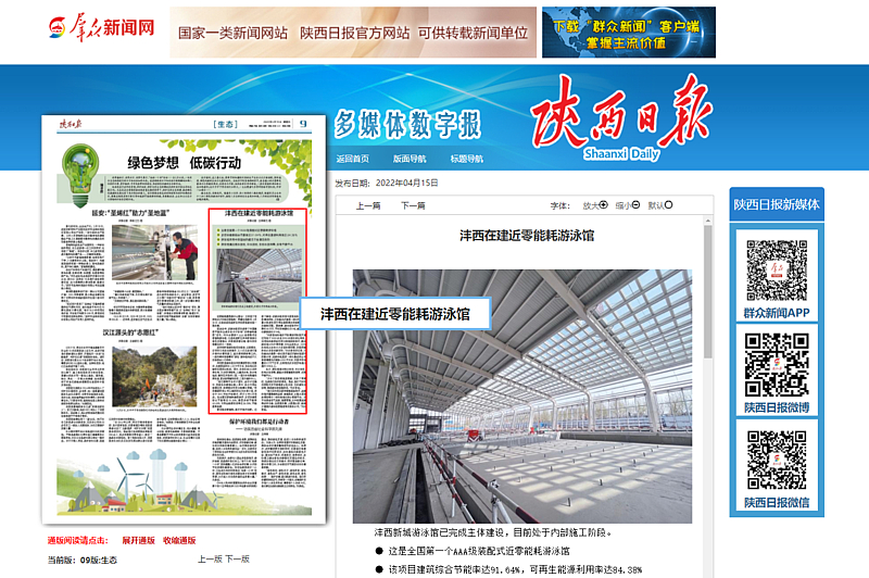你見過(guò)這樣的游泳館嗎?今年9月,這座全國(guó)首個(gè)認(rèn)證的AAA級(jí)裝配式近零能耗游泳館,將在灃西新城投入使用,成為西咸新區(qū)灃西新城踐行綠色發(fā)展理念,積極探索碳達(dá)峰、碳中和實(shí)現(xiàn)路徑的又一突破。2021年8月,經(jīng)中國(guó)建筑節(jié)能協(xié)會(huì)測(cè)評(píng),該項(xiàng)目建筑綜合節(jié)能率達(dá)91.64%,建筑本體節(jié)能率46.49%,可再生能源利用率達(dá)84.38%,節(jié)能效果顯著,獲批“近...