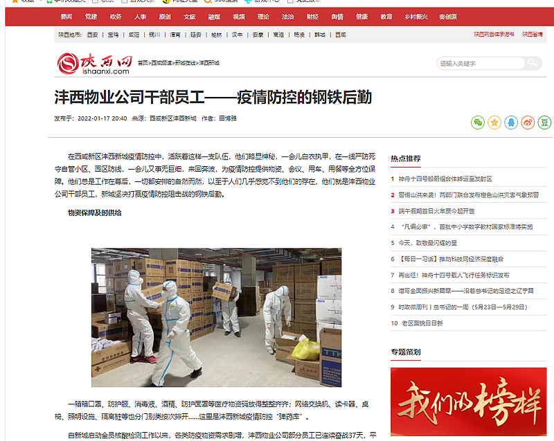 在西咸新區(qū)灃西新城疫情防控中,活躍著這樣一支隊(duì)伍,他們略顯神秘,一會(huì)兒白衣執(zhí)甲,在一線嚴(yán)防死守自管小區(qū)、園區(qū)防線,一會(huì)兒又事無(wú)巨細(xì),來(lái)回奔波,為疫情防控提供物資、會(huì)議、用車、用餐等全方位保障。他們總是工作在幕后,一切都安排的自然而然,以至于人們幾乎感覺不到他們的存在,他們就是灃西物業(yè)公司干部員工,新城堅(jiān)決打贏疫情防控阻擊戰(zhàn)的鋼鐵后勤。