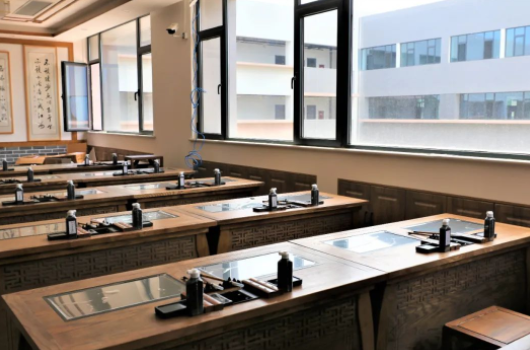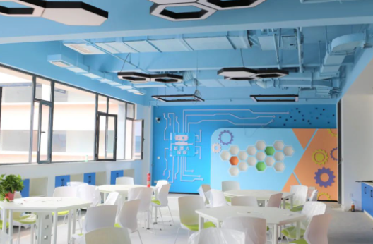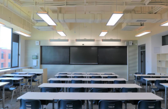 音效保障:為保證老師講課效果并避免聲音擴(kuò)散,在前后墻面采用吸音板并內(nèi)填吸音棉,以保證吸音效果。同時(shí),教室安置聲麥設(shè)施,有效提升老師、學(xué)生音量,確保教學(xué)過程中老師與學(xué)生之間的有效溝通。