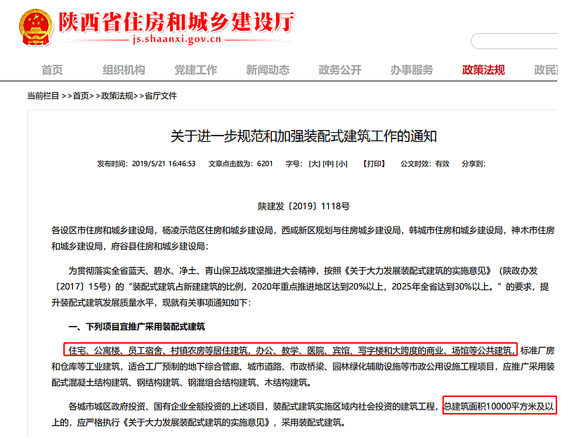 2019年5月21日,陜西省住房和城鄉(xiāng)建設(shè)廳發(fā)布《關(guān)于進一步規(guī)范和加強裝配式建筑工作的通知》,進一步規(guī)范了陜西省裝配式建筑工作的方方面面。