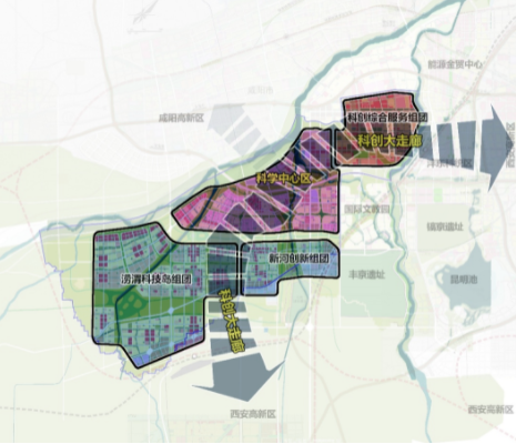 西部科技創(chuàng)新港“一廊一區(qū)三組團(tuán)”功能結(jié)構(gòu)
