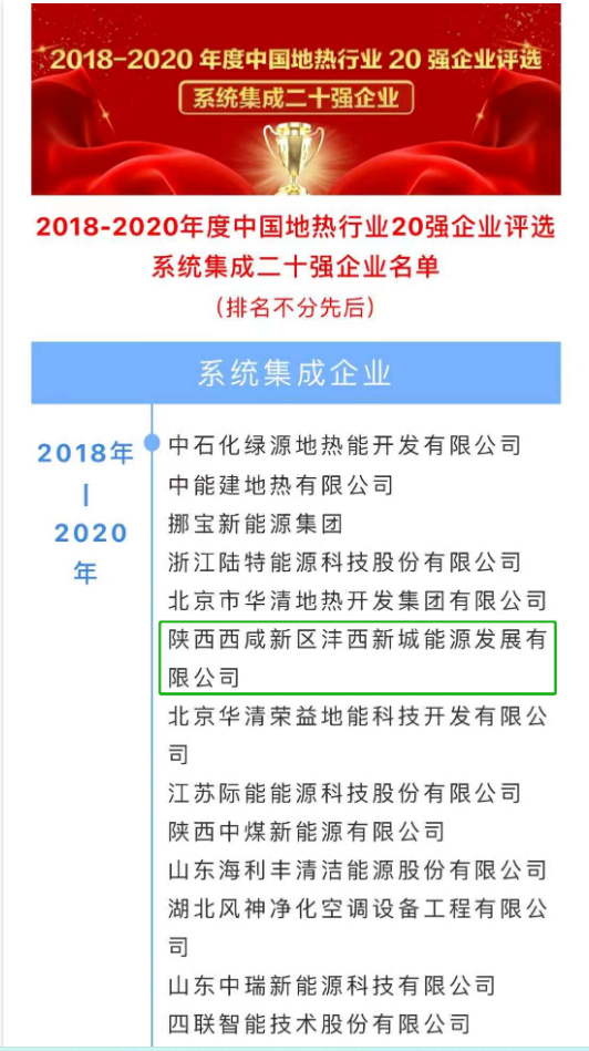 被評為“中國地?zé)嵝袠I(yè)系統(tǒng)集成20強企業(yè)”